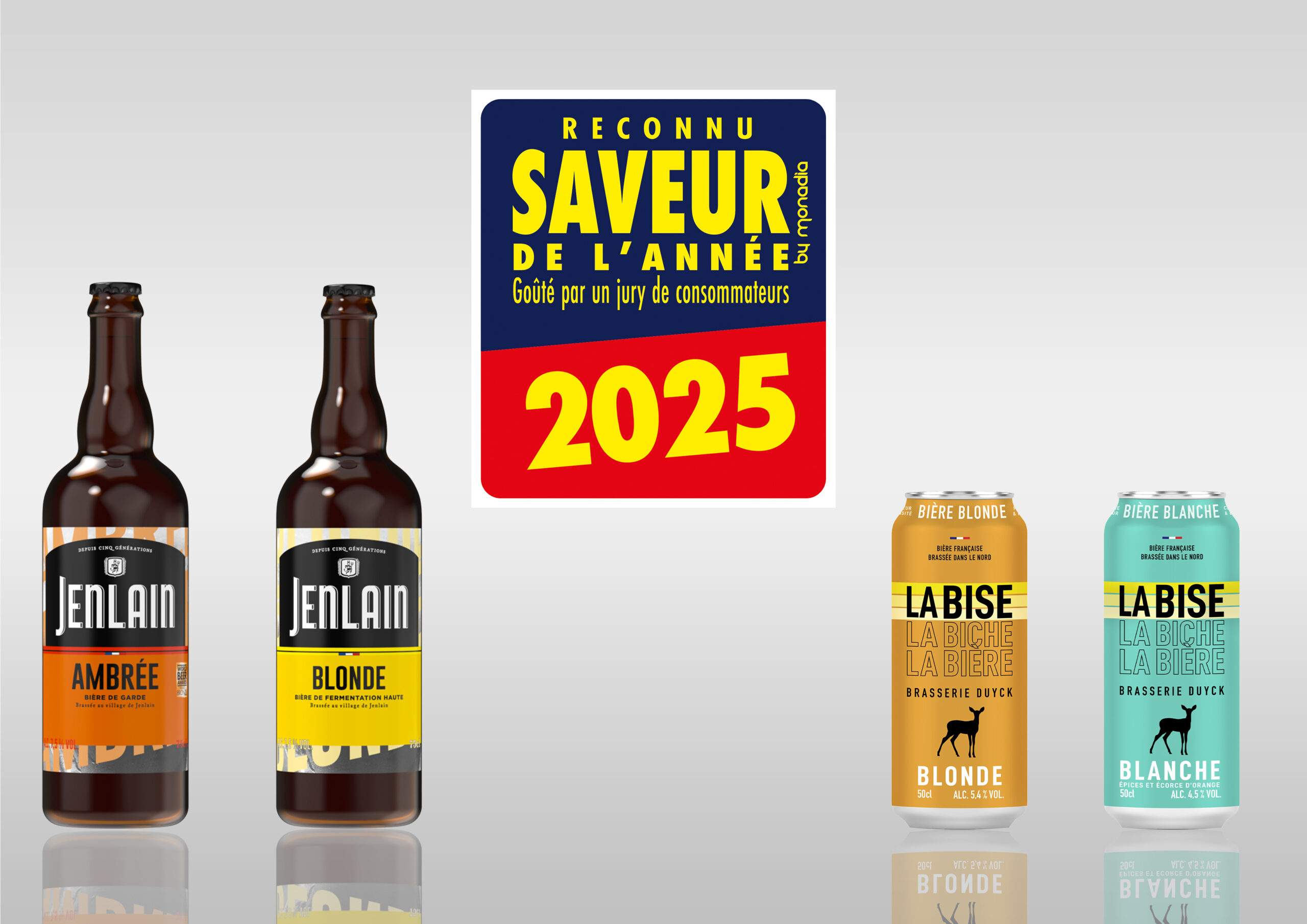 L’année commence très bien pour la Brasserie Duyck puisque nous sommes ravis de vous partager que deux recettes de la marque Jenlain et de la marque La Bise ont été élues Saveurs de l’Année 2025 !